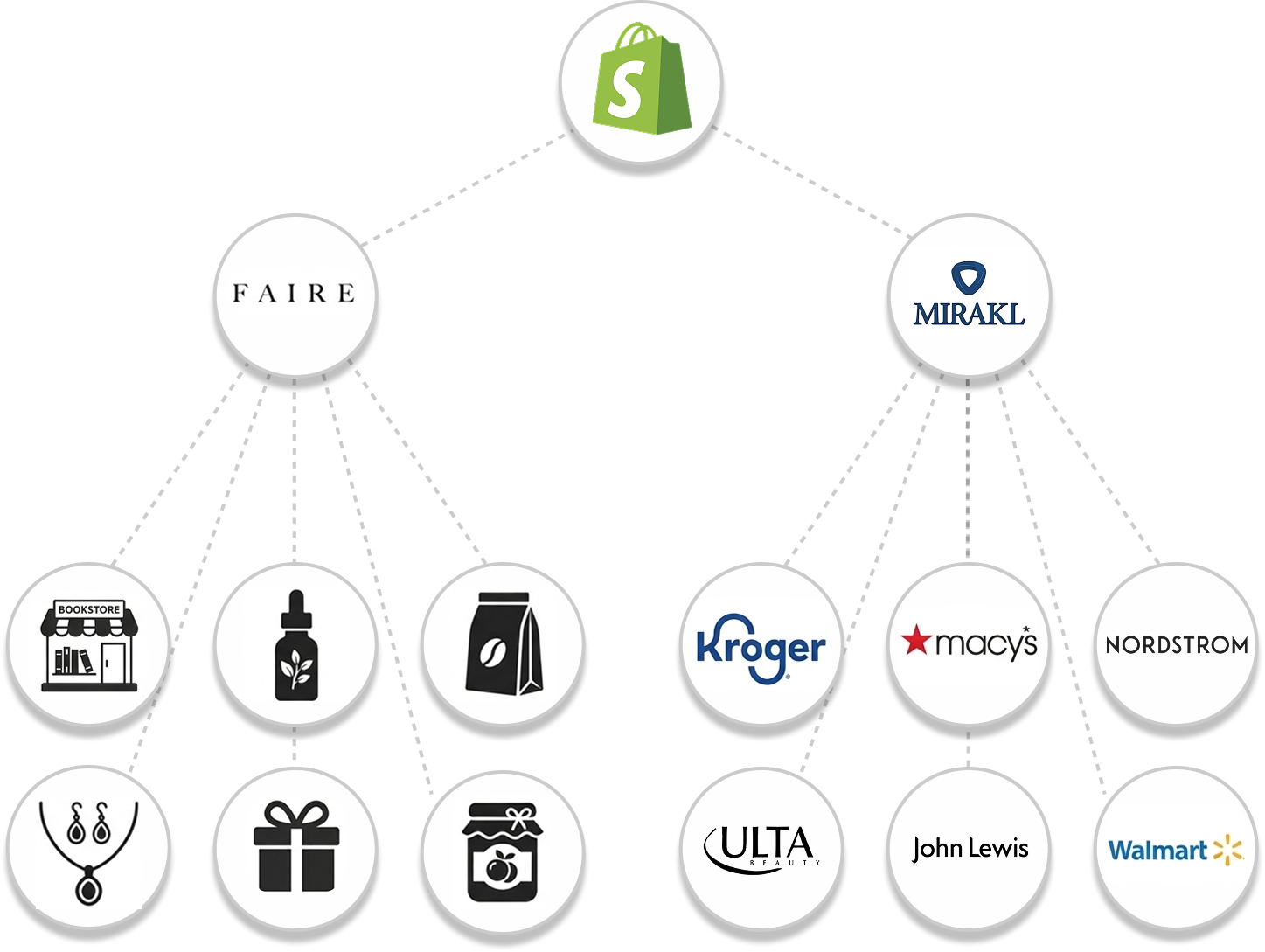 We synchronize your Shopify ecosystem with the world’s leading B2B marketplaces. By unifying your data across Faire and the Mirakl network, we enable you to scale from independent boutiques to national retailers such as Macy’s, Nordstrom, Bloomingdale’s, Anthropologie, John Lewis, Ulta Beauty, Walmart and Kroger, all from a single source of truth.